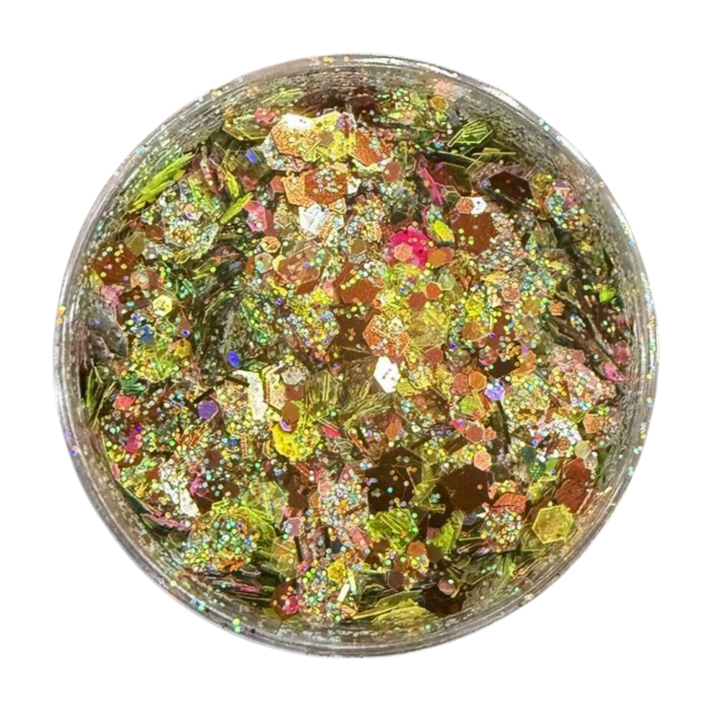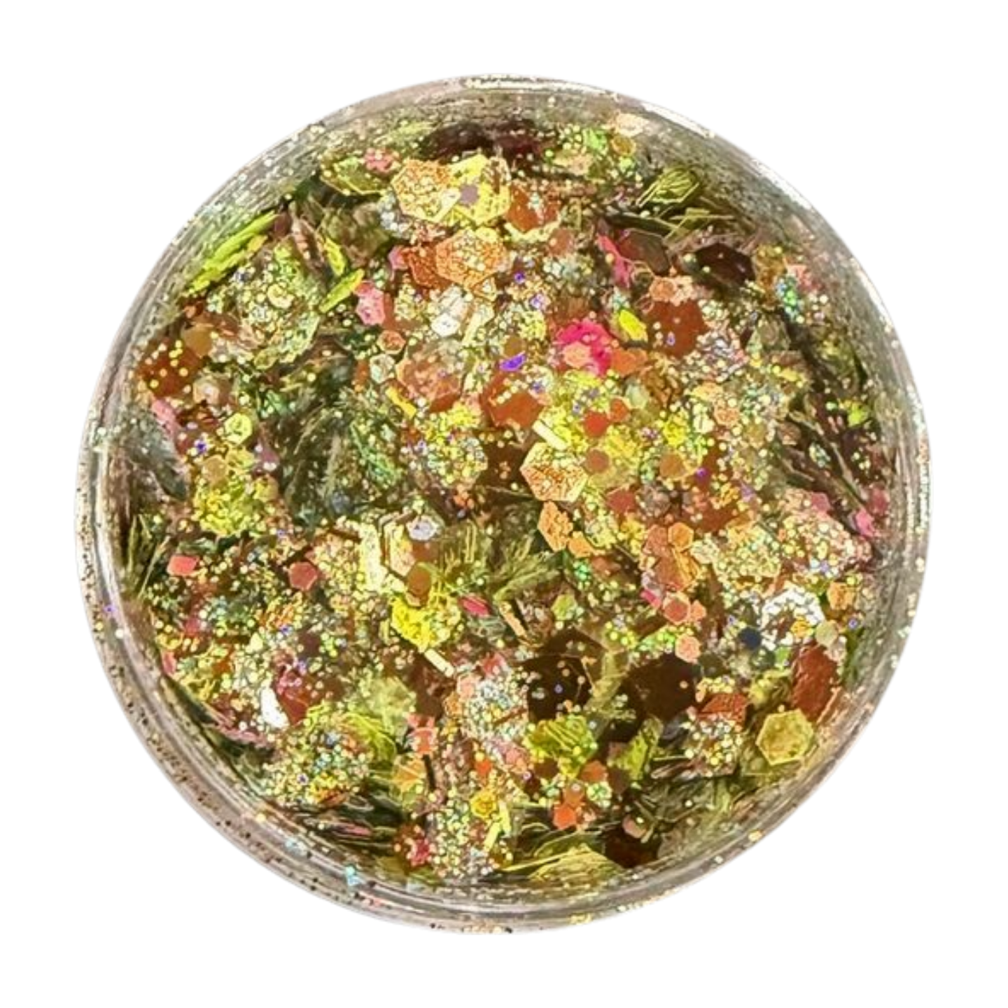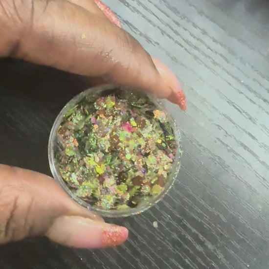 This green iridescent chunky glitter mix with a combination of fine glitter.